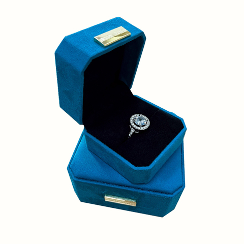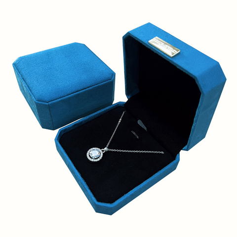 Caja colgante de terciopelo verde con diseño personalizado completamente reciclado